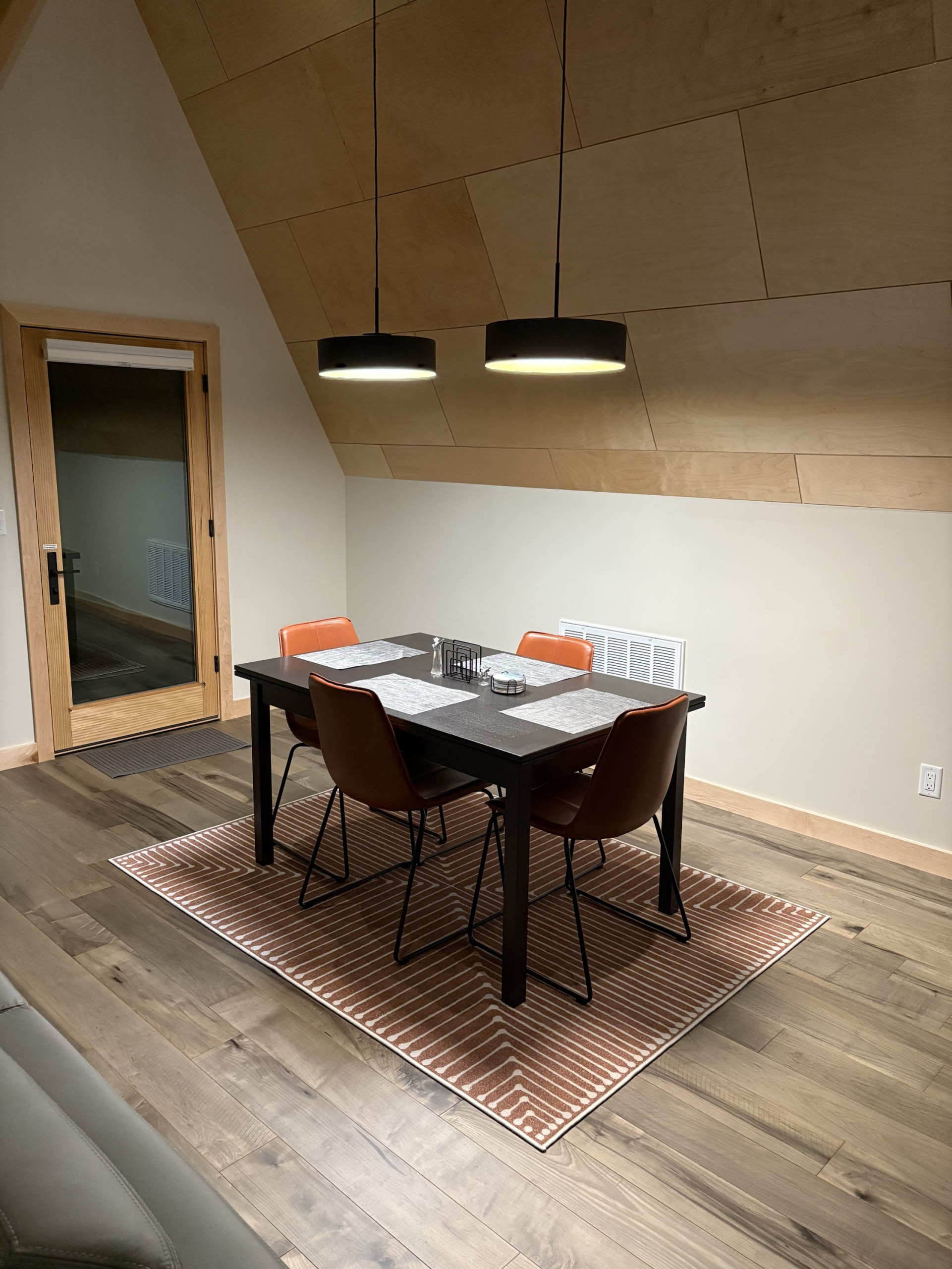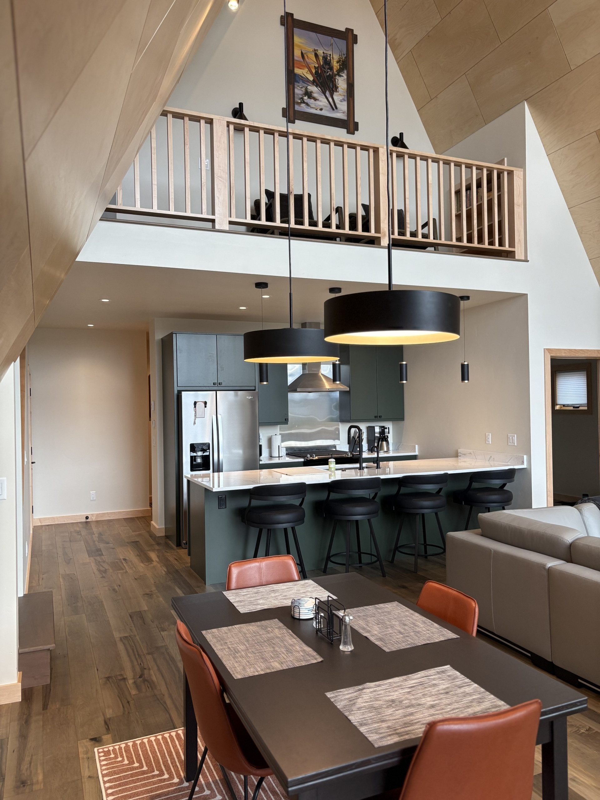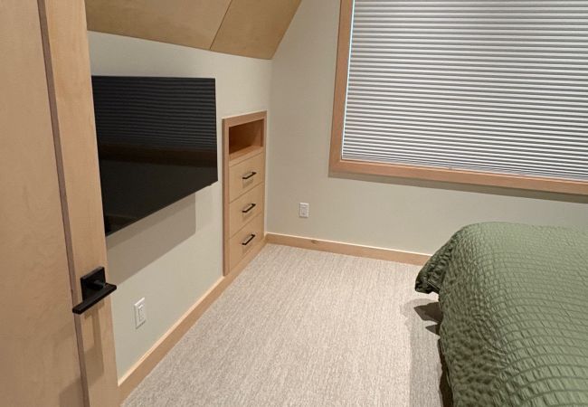 The first floor offers an open living and dining area, bedroom and bathroom with inclusive washer/dryer and a unique mudroom featuring ski/snowboard storage, bench, storage cubbies, hooks for jackets and a boot/glove dryer ensuring your gear is ready for the next day on the hill or on the lake. The fully stocked kitchen is perfect for cooking your favorite meal while enjoying your favorite programs on the 65" TV and views of Georgetown Lake. The 2nd floor includes a sitting area/library with stunning views of Georgetown Lake and a bedroom with an inclusive private bathroom. This cabin comfortably accommodates up to 4 guests with 2 king beds-perfect for two couples or a family.