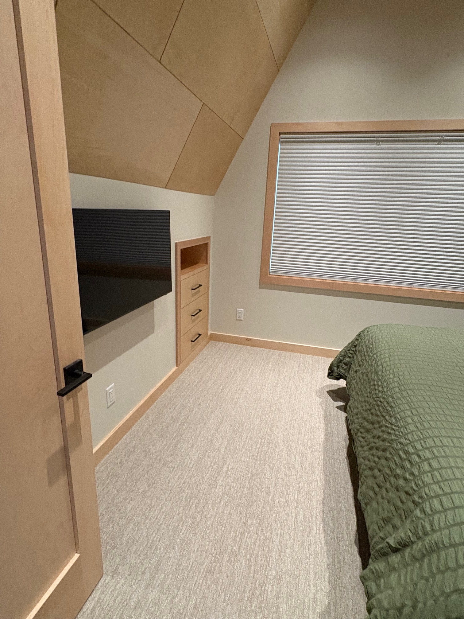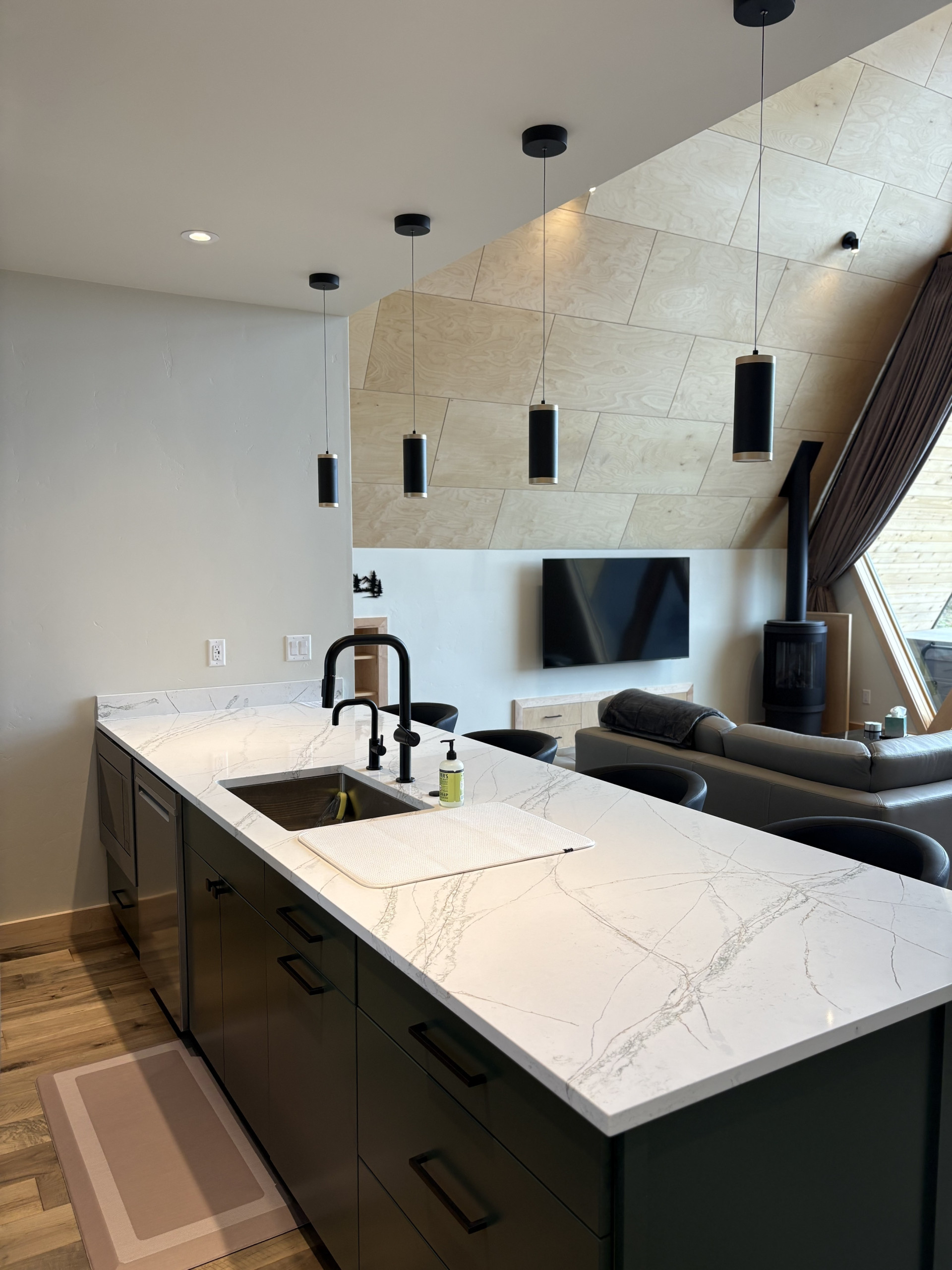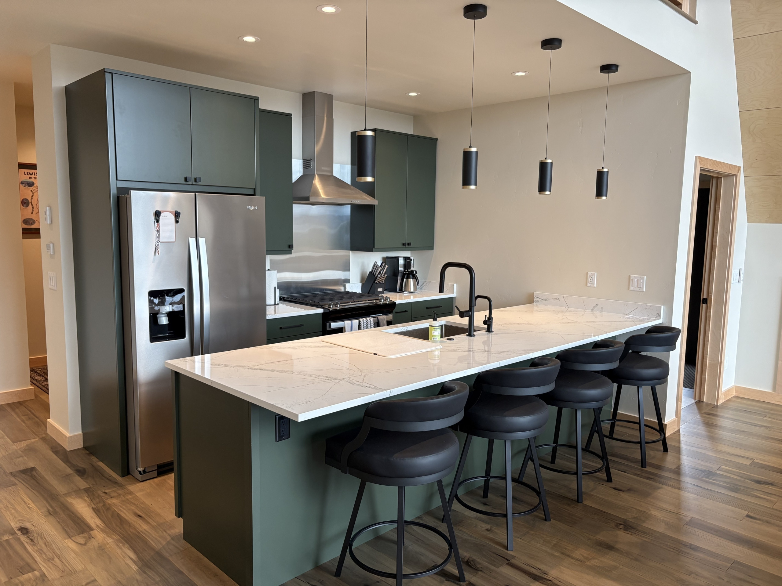 The first floor offers an open living and dining area, bedroom and bathroom with inclusive washer/dryer and a unique mudroom featuring ski/snowboard storage, bench, storage cubbies, hooks for jackets and a boot/glove dryer ensuring your gear is ready for the next day on the hill or on the lake. The fully stocked kitchen is perfect for cooking your favorite meal while enjoying your favorite programs on the 65" TV and views of Georgetown Lake. The 2nd floor includes a sitting area/library with stunning views of Georgetown Lake and a bedroom with an inclusive private bathroom. This cabin comfortably accommodates up to 4 guests with 2 king beds-perfect for two couples or a family.